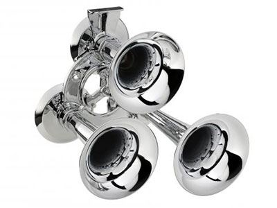 Kahlenberg Chimetone Air Horns all utilize more than one projector or “trumpet” in their design. These projectors each produce a different fundamental frequency which combine to produce powerful, distinctive, musical chords. To hear a Chimetone Air Horn is to realise that the sound of a vessel can be one of its most impressive aspects. The Model T-3A Air Horn is designed for the most discriminating yachtsman. It is made entirely of bronze and brass, and is triple plated for a deep chrome finish.