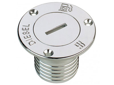 “DIESEL” labelled deck filler with hose connector, in chromium-plated brass (1177C).
