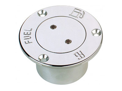 “FUEL” labelled deck filler, in chromium-plated brass.