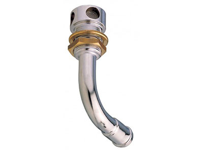 90º gas tank vent with hose connection left side, chromium-plated brass. Also available in polished brass #1188SL.